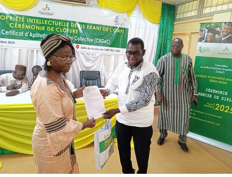 À l’issue d’une formation intensive de trois mois, 11 nouveaux professionnels issus de divers horizons ont reçu leur Certificat d’Aptitude en gestion collective des droits d’auteur (CAGeC), consolidant ainsi leurs compétences pour renforcer ce pilier essentiel à l’essor de la propriété littéraire et artistique dans leurs pays respectifs.